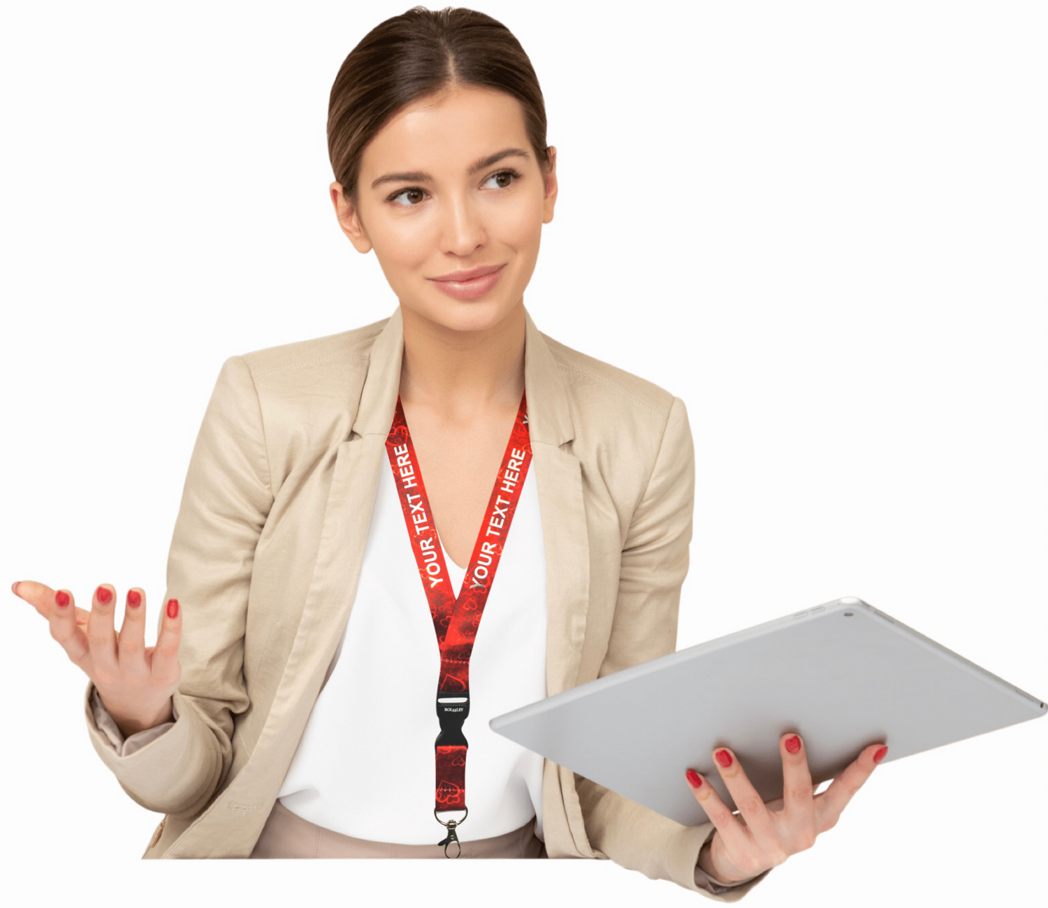 IšpardavimasRaudonos spalvos kaklajuostė su Jūsų tekstu