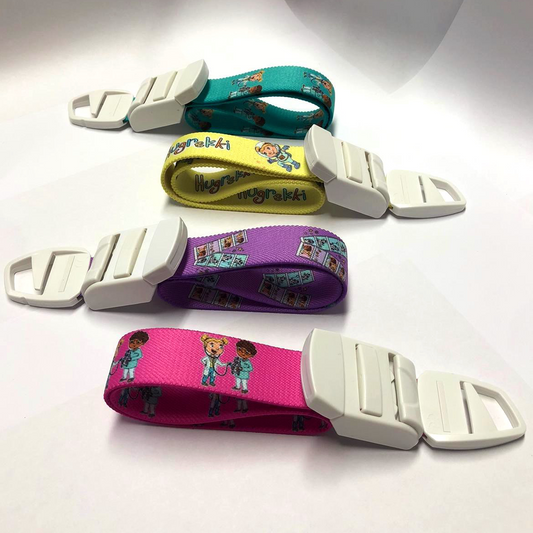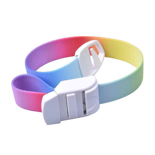 - Vaivorykštės spalvų medicininis turniketas su atspausdintu JŪSŲ VARDU AR TEKSTU ANT JUOSTELĖS.