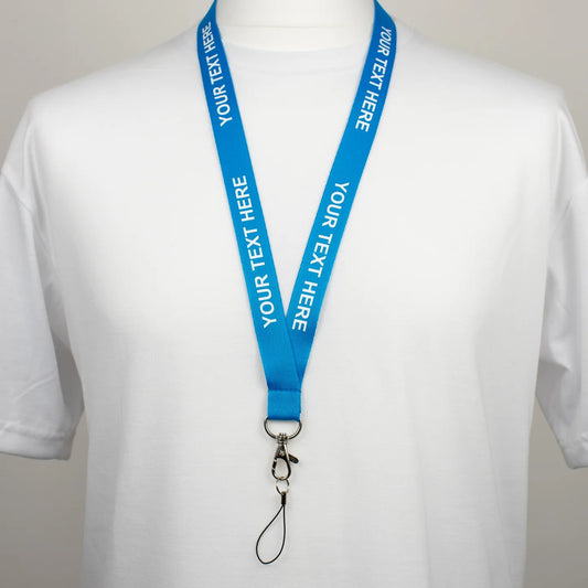 IšpardavimasŠviesiai mėlynos spalvos kaklajuostė su Jūsų tekstu